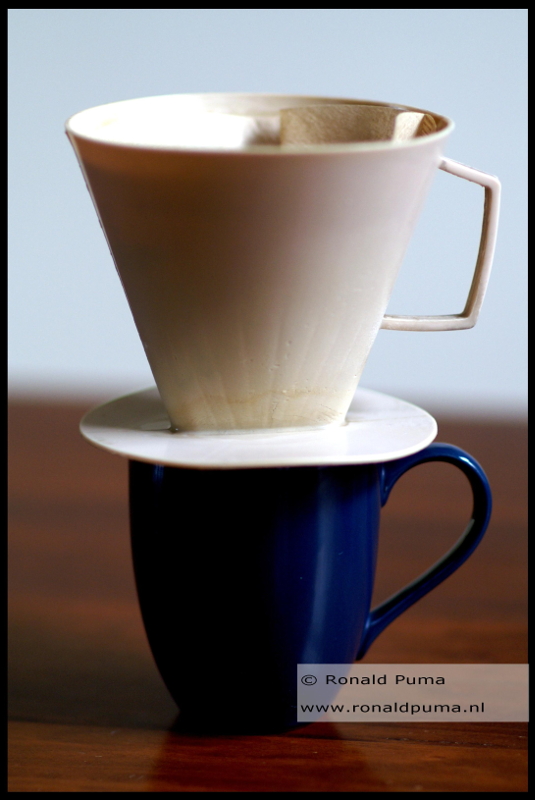 Gebruiksaanwijzing voor 1 kop koffie: plaats filterhouder op mok, doe er een papieren filter in (ik heb altijd die bruine), doe er gewone gemalen koffie in (2 à 3 afgestreken lepels), giet kokend water langzaam op de koffie, giet alleen in het midden en niet aan de randen om de koffiesmaak maximaal te benutten (zet de filter in de gootsteen om uit te lekken en gooi deze later weg met GFT), voeg suiker en melk naar keuze toe.
