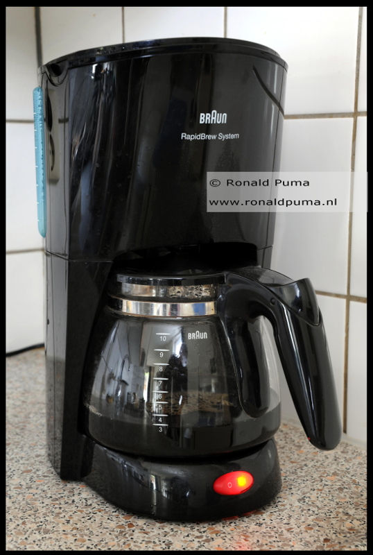 Gebruiksaanwijzing voor meerdere koppen koffie in een koffiezetapparaat: vul de glazen kan met water (en doe dat door te tellen hoeveel, dus 4 koppen koffie is tellen tot 4 en kijk ook naar het streepje op de kan), plaats een papieren filter in de filterhouder, doe er gemalen koffie in (4 koppen koffie is 4 à 5 afgestreken lepels), zet het apparaat aan en als het geborrel ophoud is de koffie klaar, voeg suiker en melk naar keuze toe.