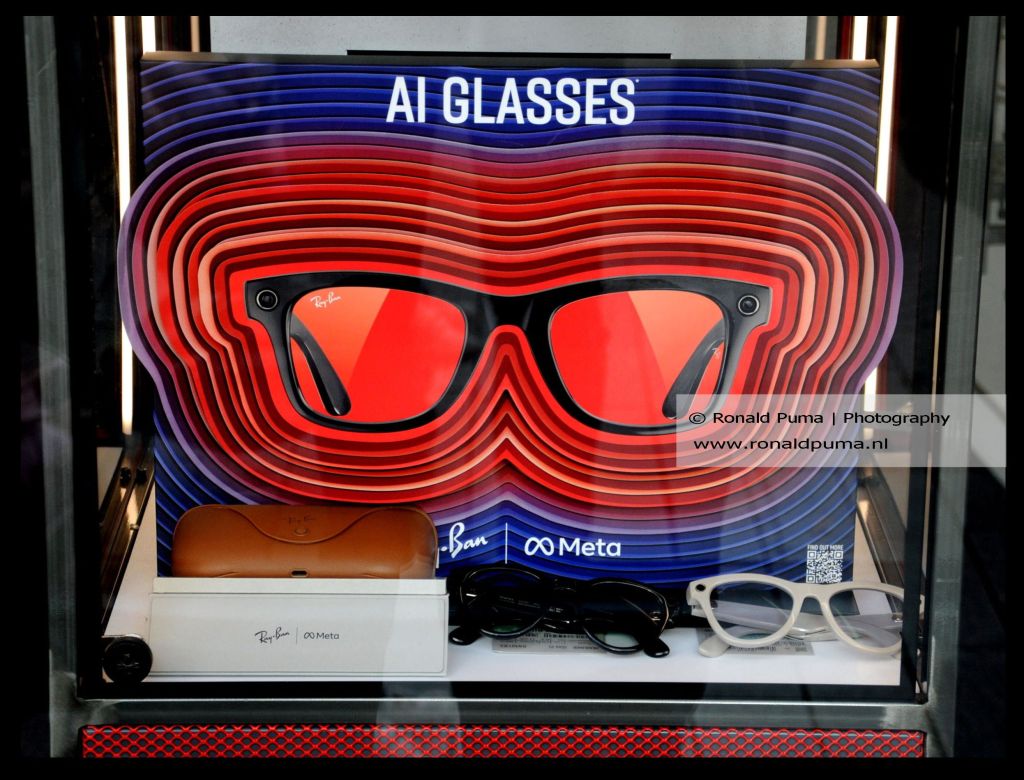 AI bril van Facebook/Meta in de etalage van een brillenwinkel.